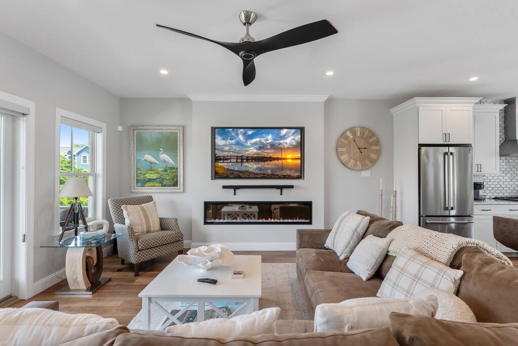 Welcome to your perfect Cape May getaway! This modern, beautifully designed townhome offers the ideal blend of comfort and convenience. Located just minutes from pristine beaches and charming downtown Cape May. Our spacious home features a bright and airy interior with contemporary decor, a fully equipped kitchen, and cozy living spaces. Relax on the private front patio or grill and dine on the private back deck. Home also has a fireplace, private elevator and garage with Tesla charging station.